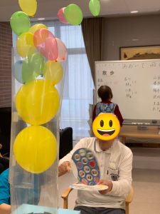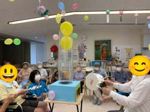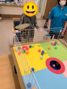 「SORA」今月のレクリエーションご紹介2025.09.29 認知症デイケアSORA 坂東です。今月おこなったレクリエーションをいくつか紹介させていただきます。一つ目は「ピンポール」。ピン球を上から落として点数の高いボックスを狙いますが、中々思うようにいかず・・・皆さんの真剣な表情が印象的でした。二つ目は「うちわで落として」。制限時間内に、2人1組でピン球を穴の中へ落とします。三つ目は「あおいで飛び出せゲーム」。2人1組で筒の中の風船をすべて外へ出して時間を競い合うゲームです。利用者様同士で協力して行うゲームなので、交流も深まり大変盛り上がりました!「介護老人保健施設 カサ・デ・エスペランサ」デイケア便り Vol.6前の記事