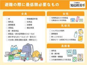 災害時に必要な物品のチェック表も掲載しておきますので、